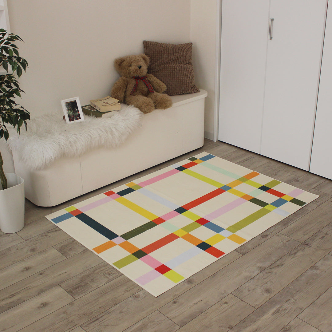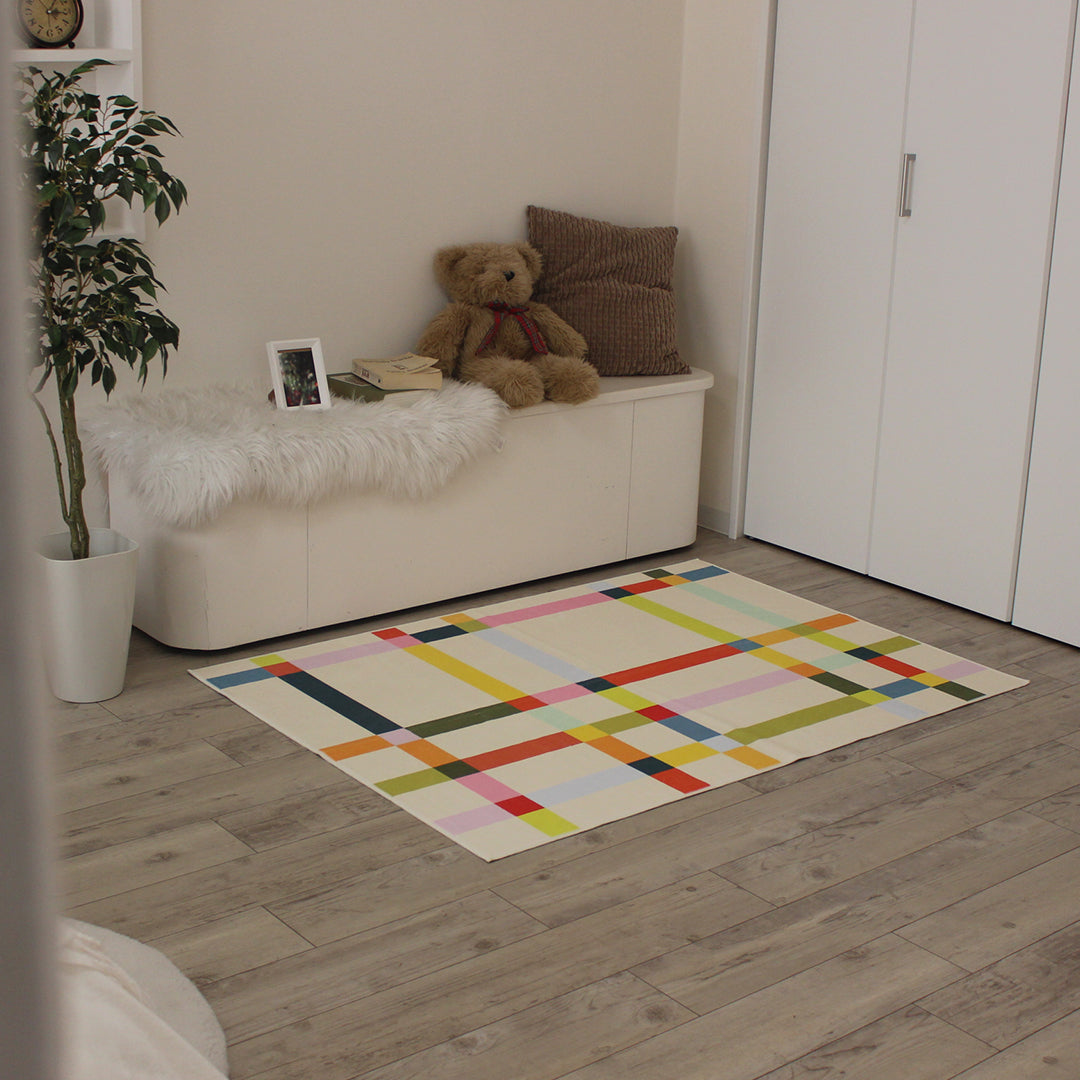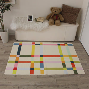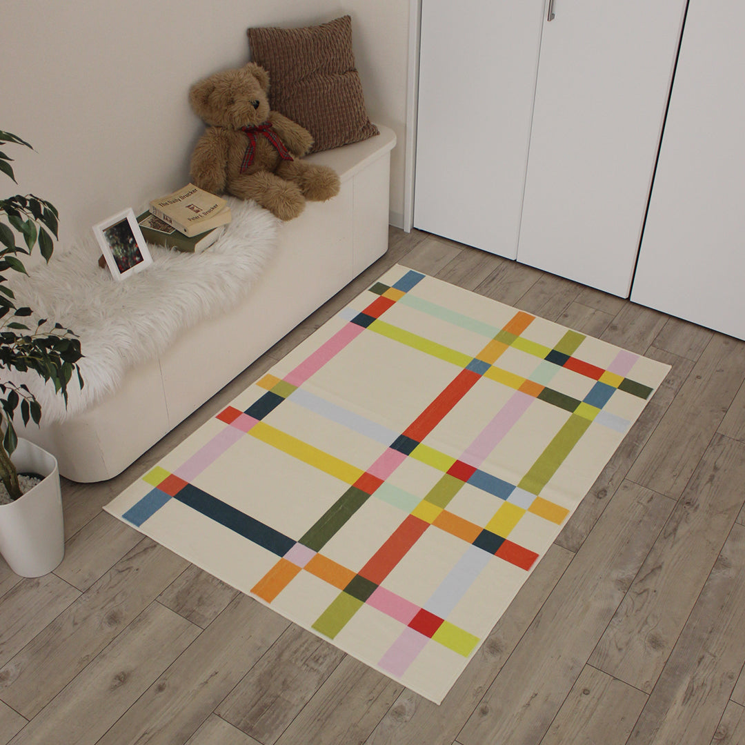 洗えるキッズラグ TOCO LIFE KIDS “キッズルーム ハッピーチェック” フランネル ベージュ