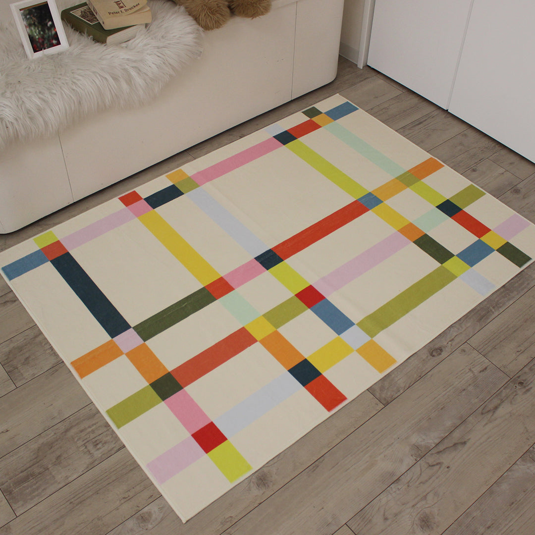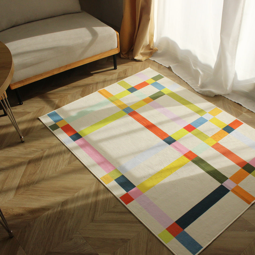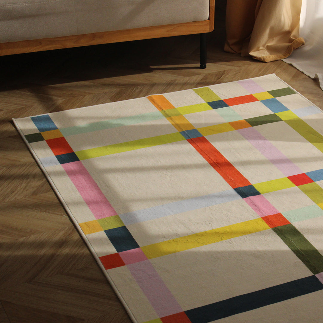 洗えるキッズラグ TOCO LIFE KIDS “キッズルーム ハッピーチェック” フランネル ベージュ