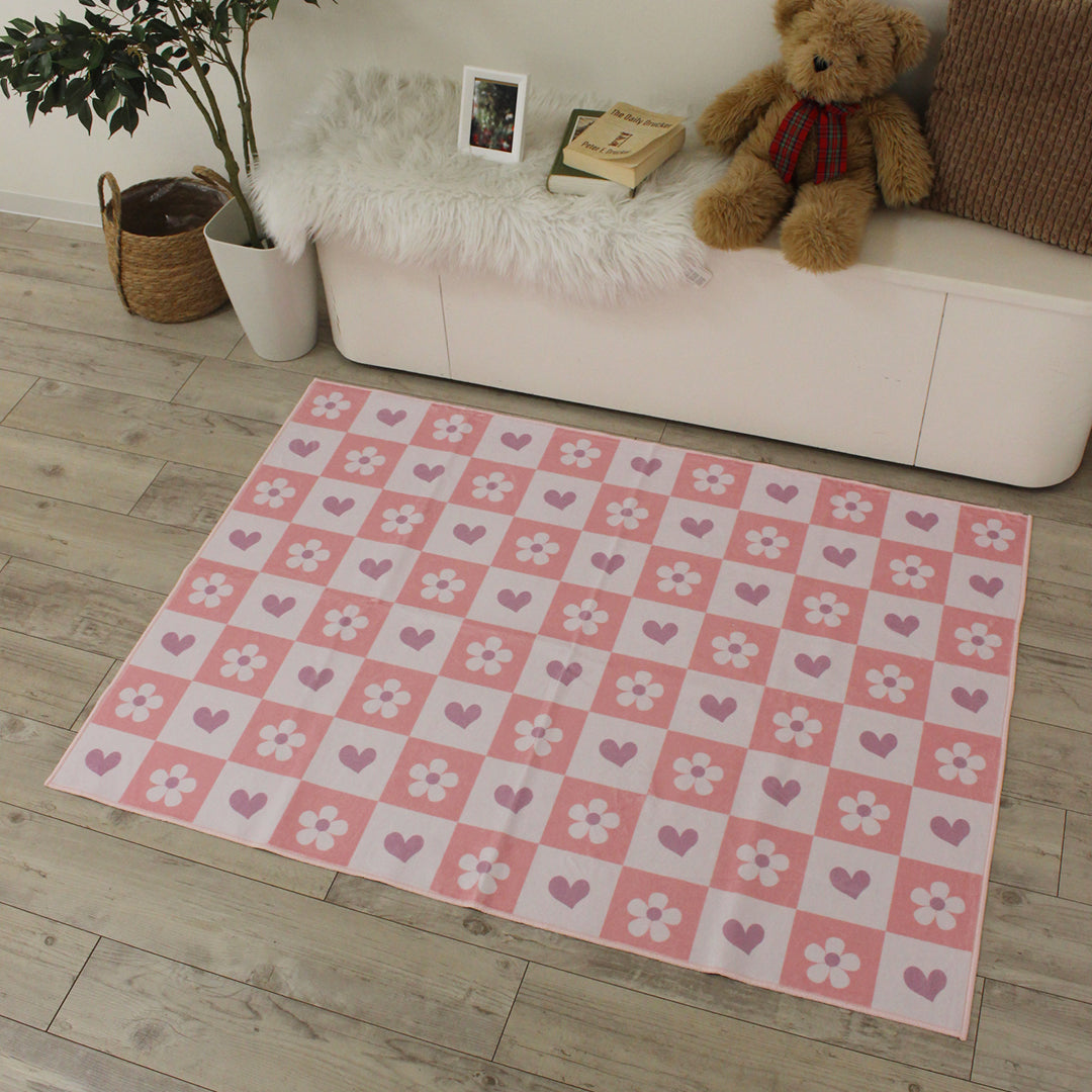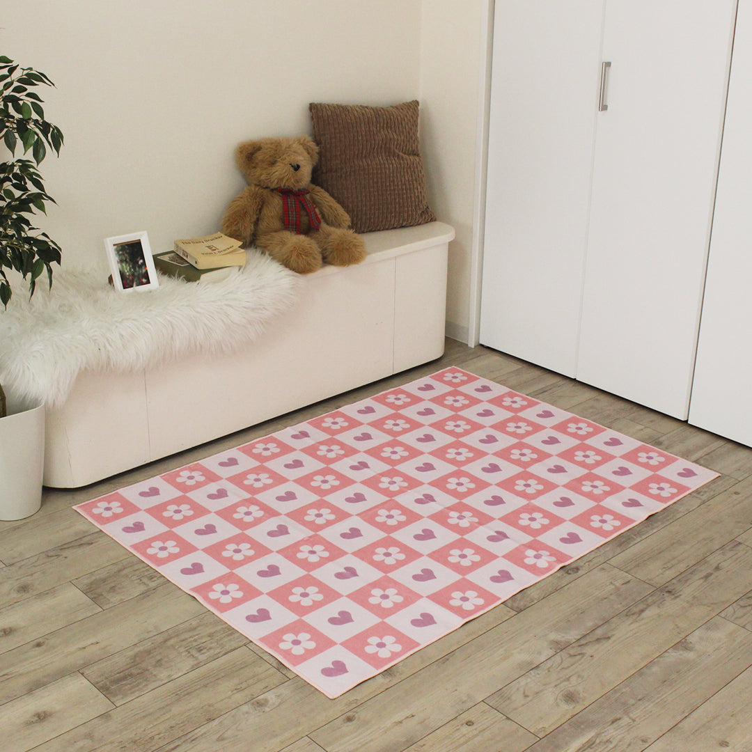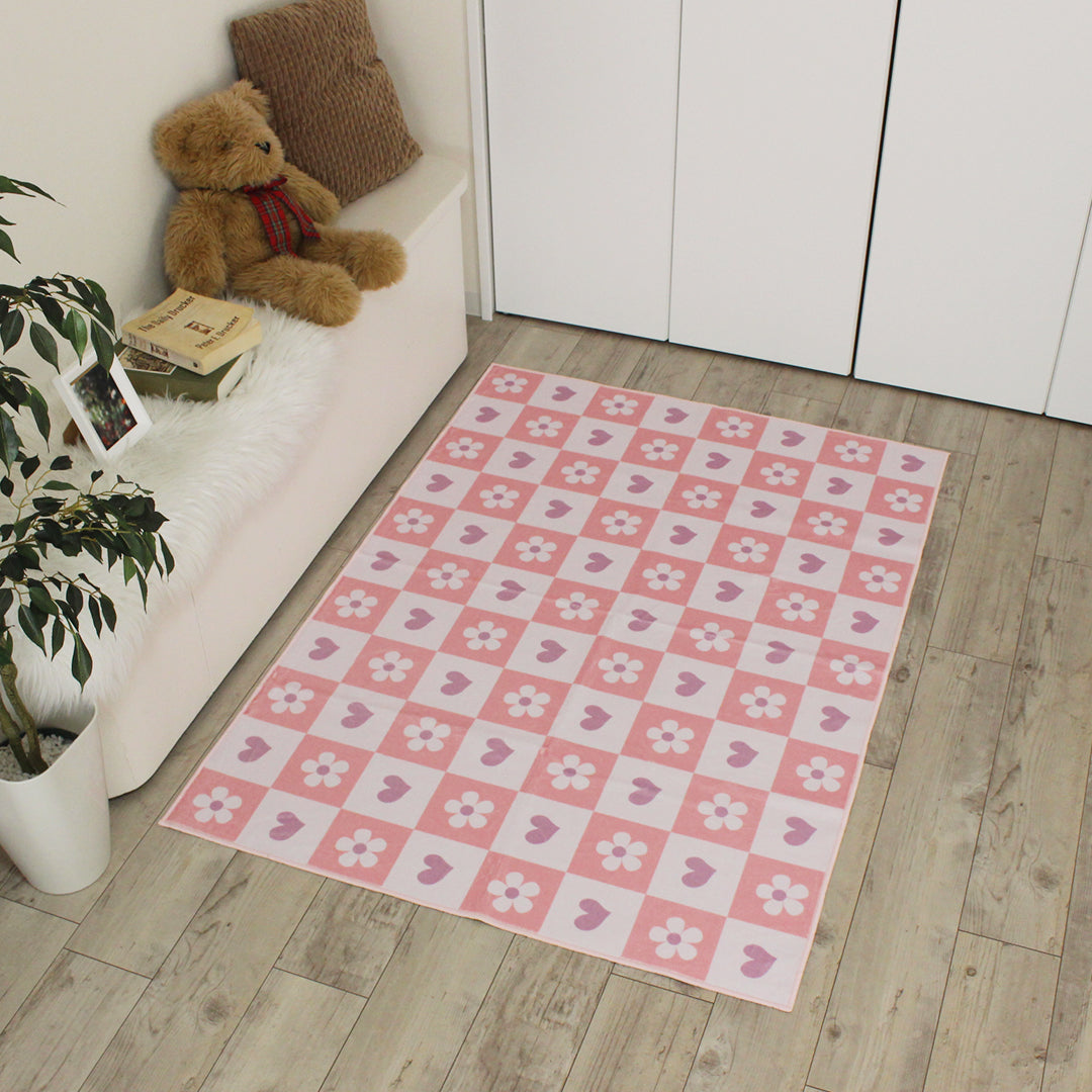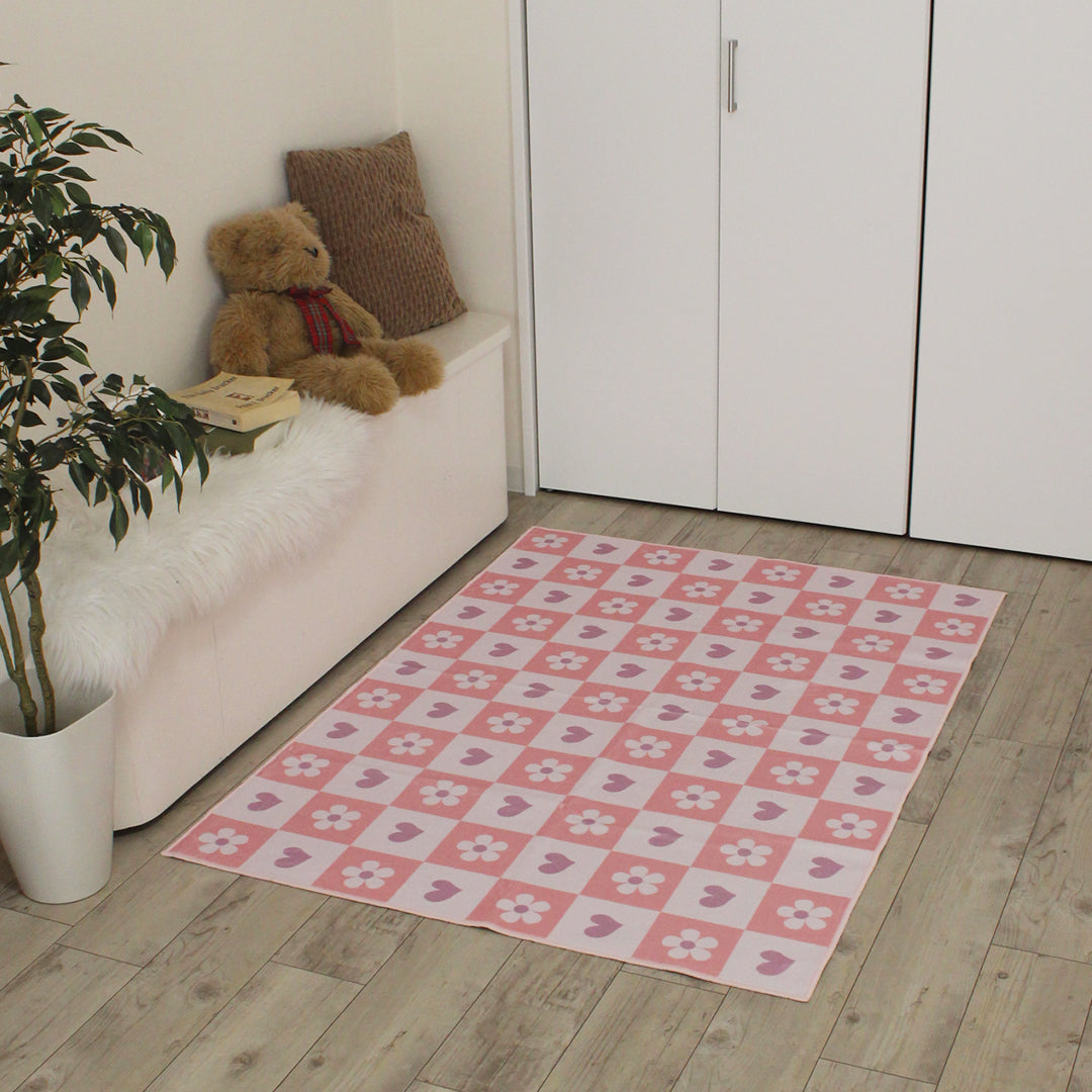洗えるキッズラグ TOCO LIFE KIDS “ハートガーデン” フランネル ピンク