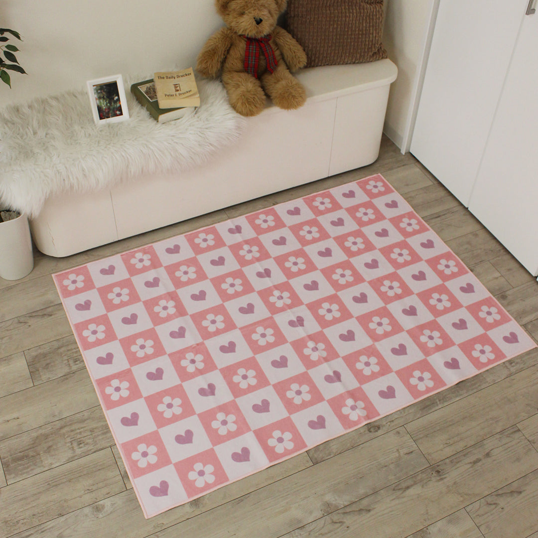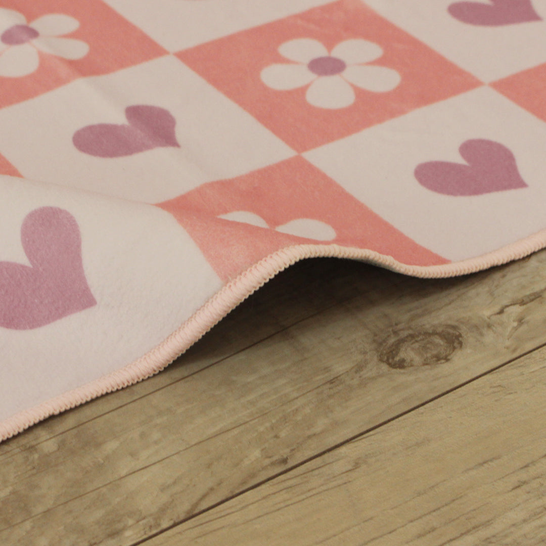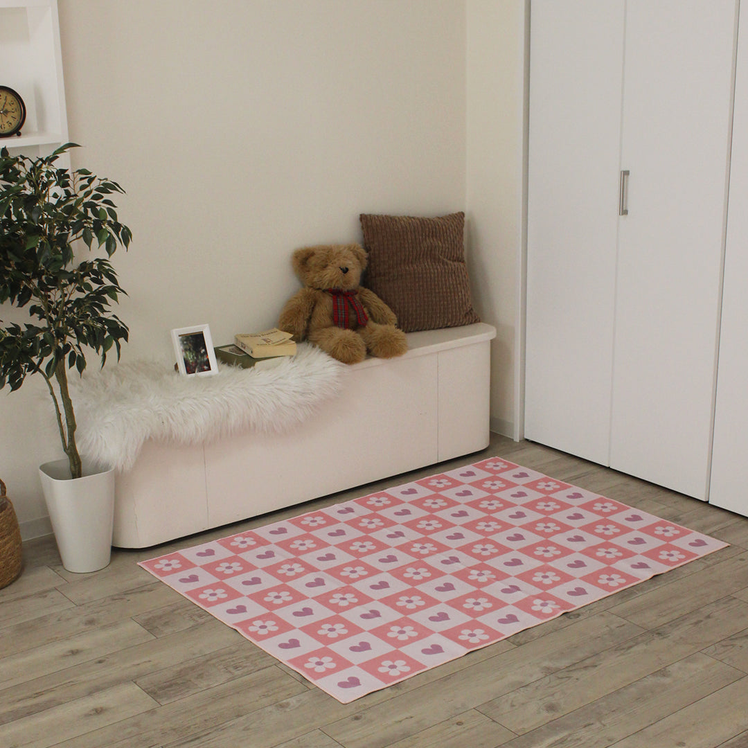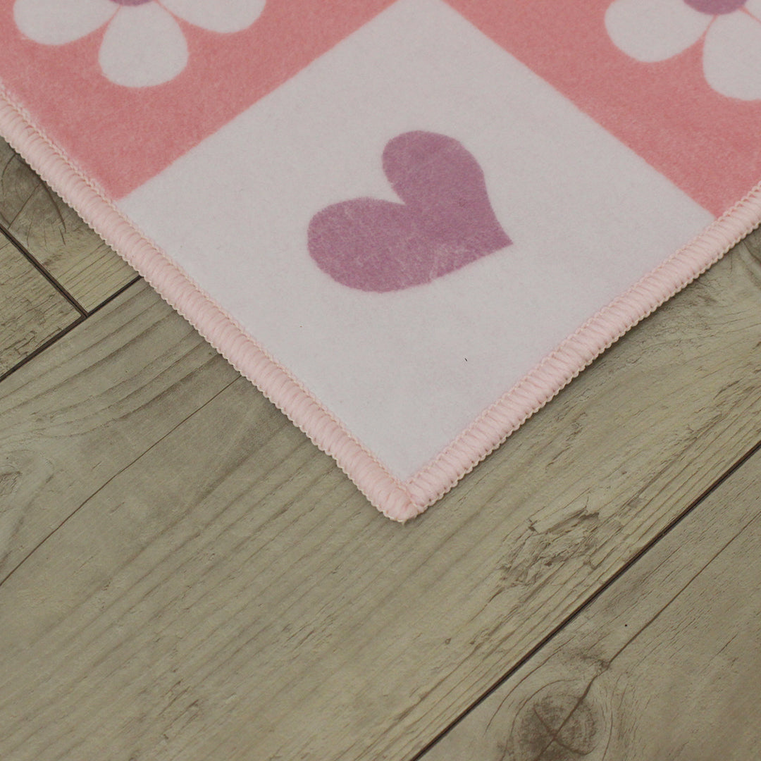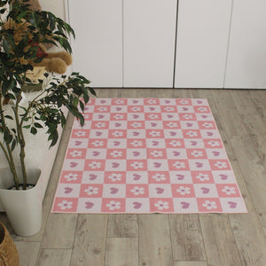 洗えるキッズラグ TOCO LIFE KIDS “ハートガーデン” フランネル ピンク