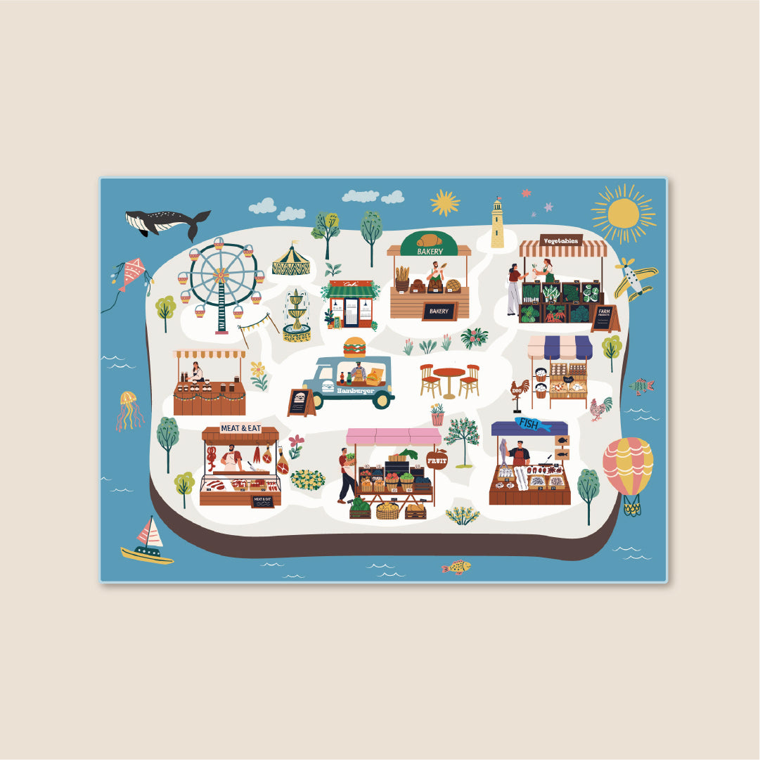 洗えるキッズラグ TOCO LIFE KIDS “お買い物ごっこ マルシェ” フランネル ブルー