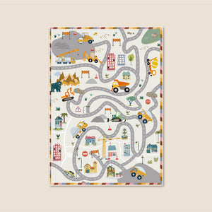 洗えるキッズラグ TOCO LIFE KIDS “ロードマップ 働く車と迷路” フランネル グレー