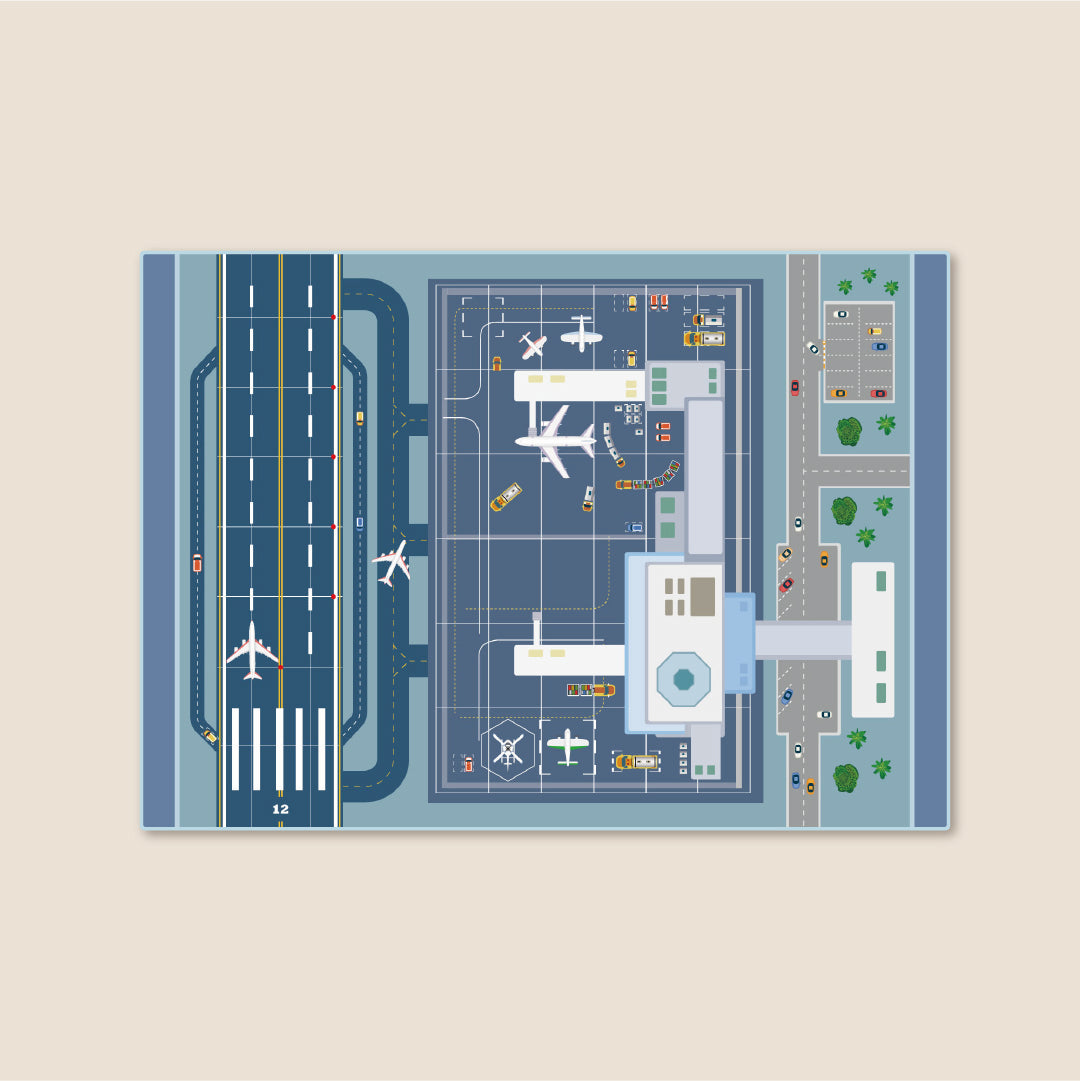 洗えるキッズラグ TOCO LIFE KIDS “ロードマップ 滑走路・飛行機” フランネル ブルー