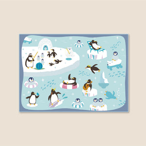洗えるキッズラグ TOCO LIFE KIDS “アニマル柄 ペンギン” フランネル ブルー