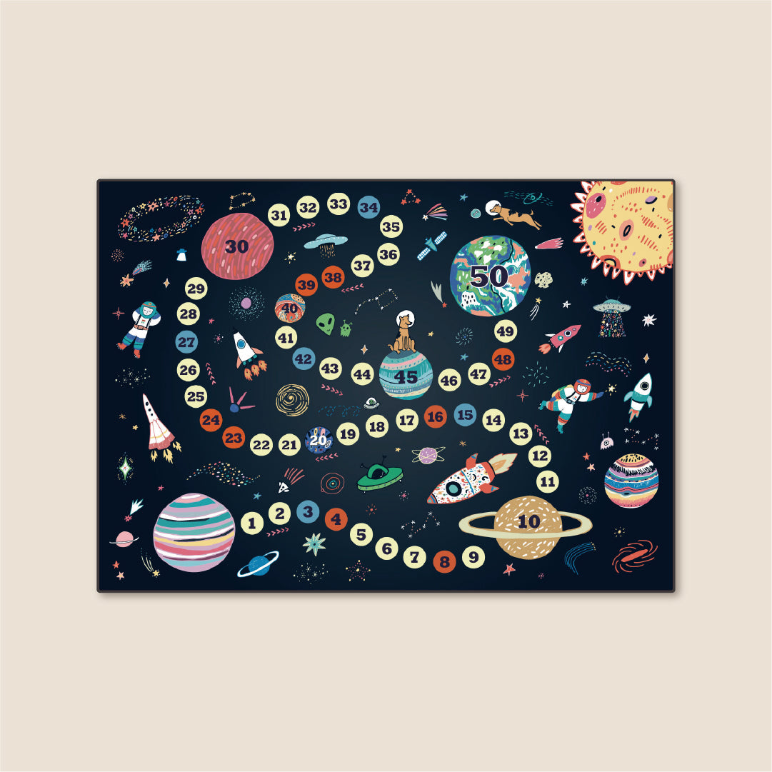 洗えるキッズラグ TOCO LIFE KIDS “知育ラグ 宇宙と数字” フランネル ネイビー