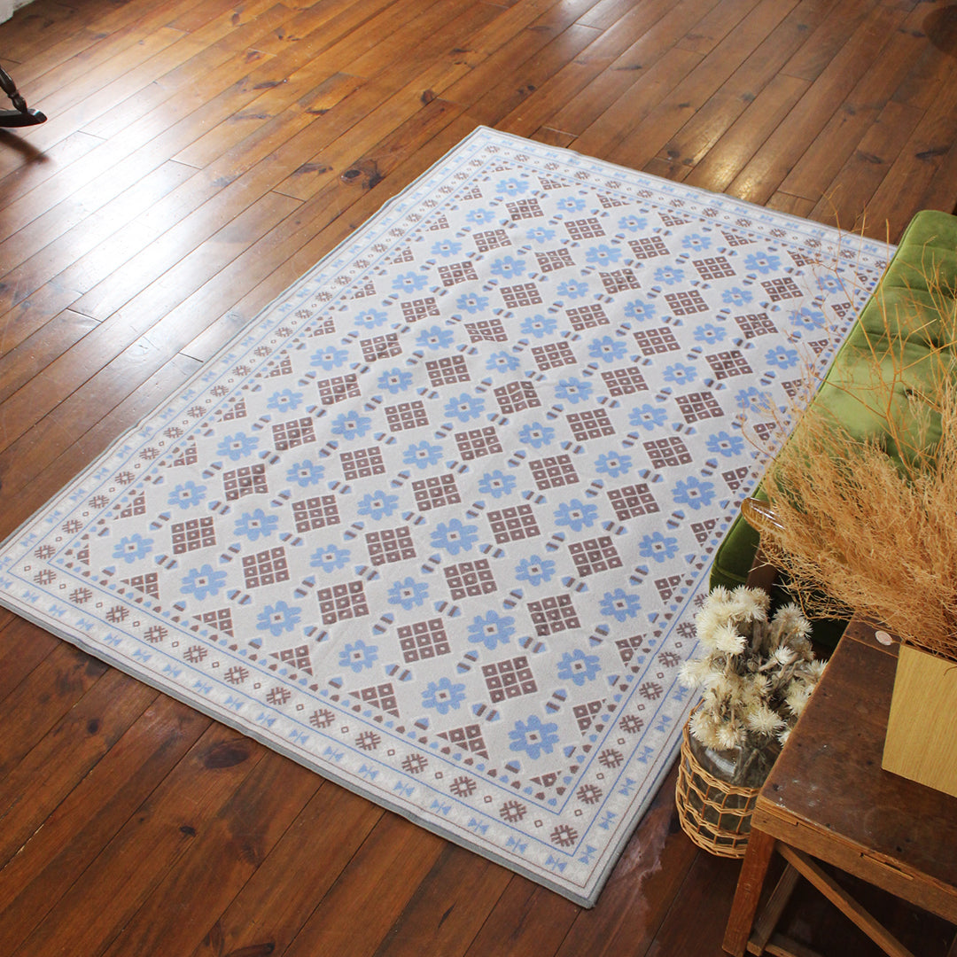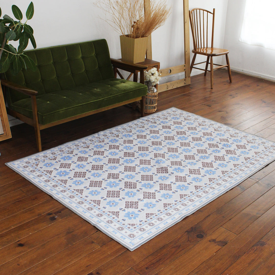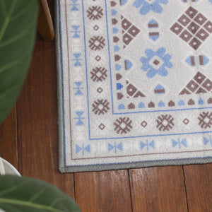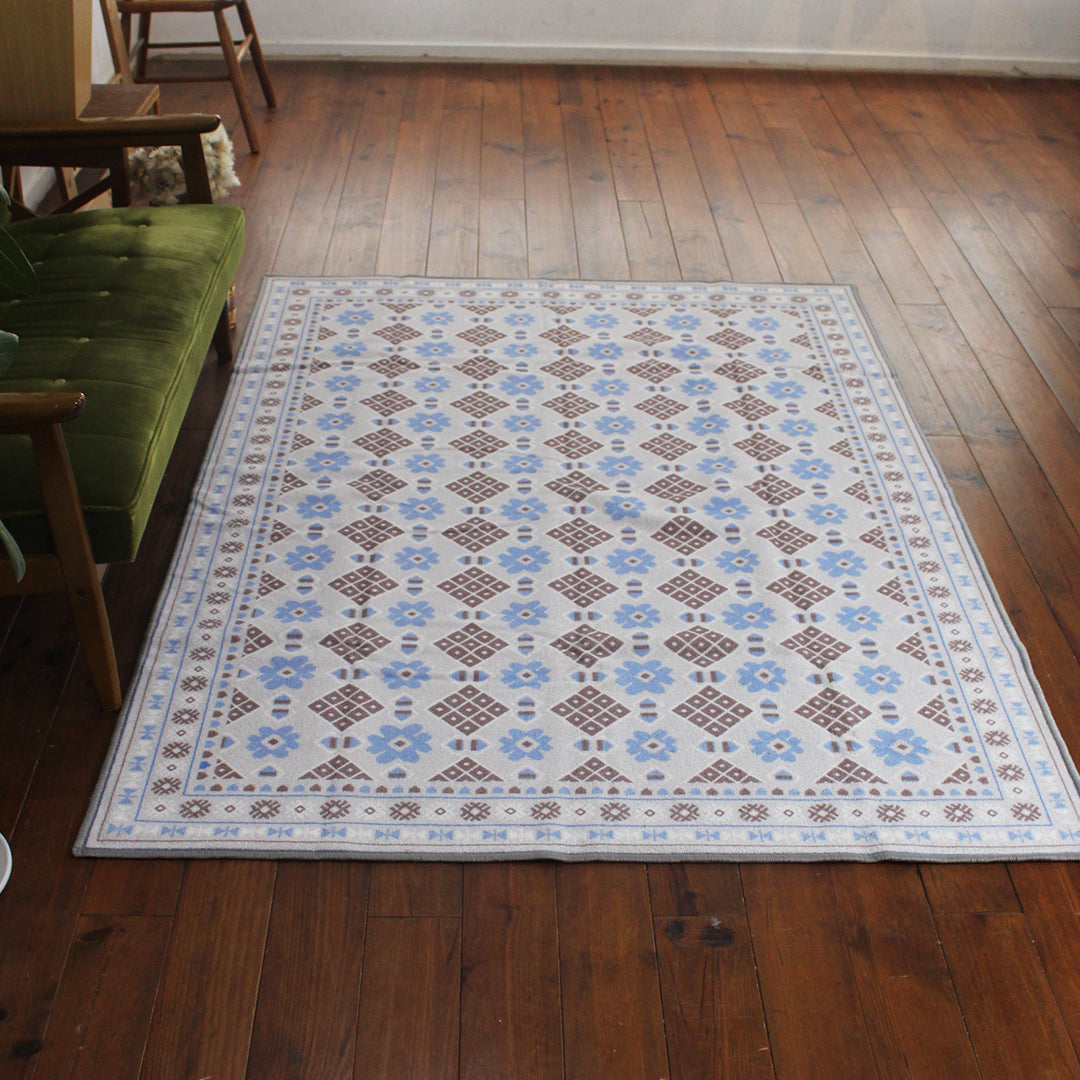 ヴィンテージ風ラグ TOCORU Series バルーチ フラワー ループ グレー