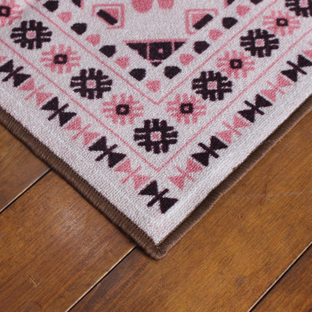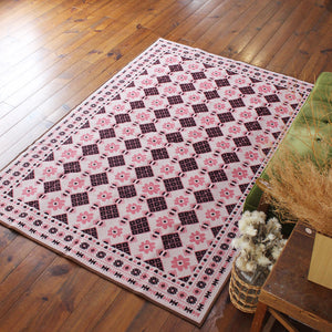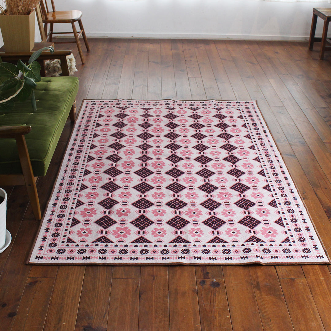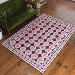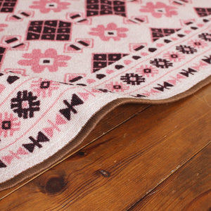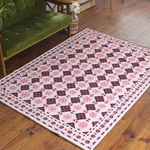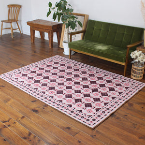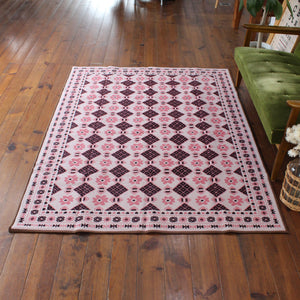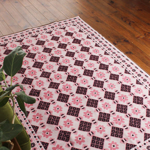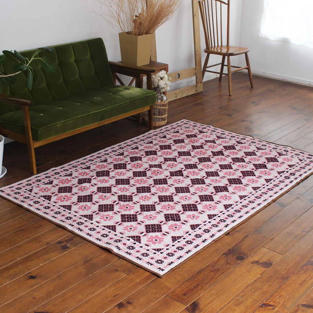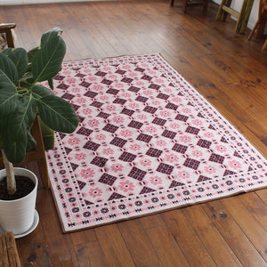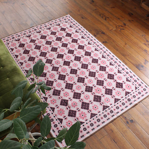 ヴィンテージ風ラグ TOCORU Series バルーチ フラワー ループ ピンク