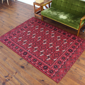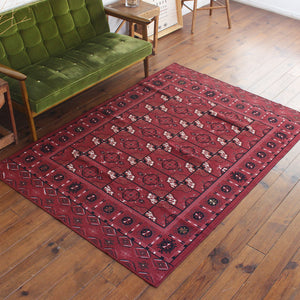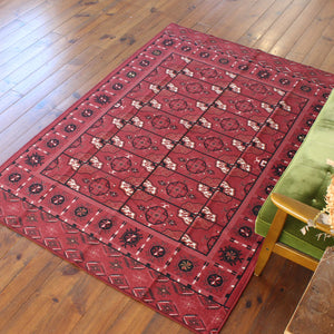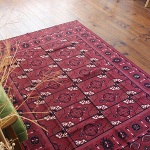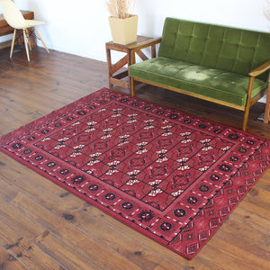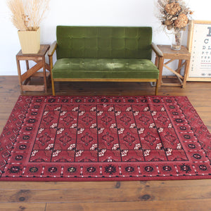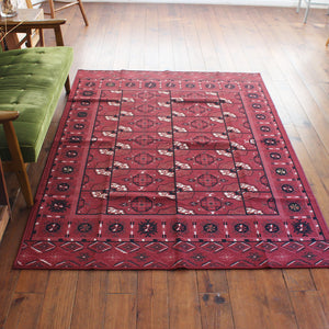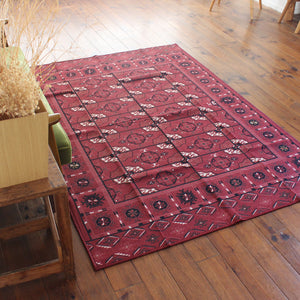 ヴィンテージ風ラグ TOCORU Series アフガンTEKKE ループ ワインレッド