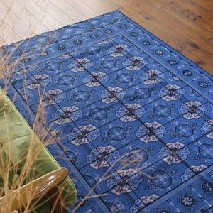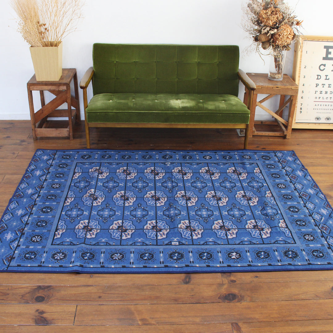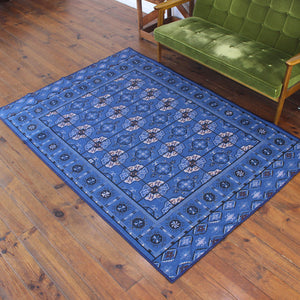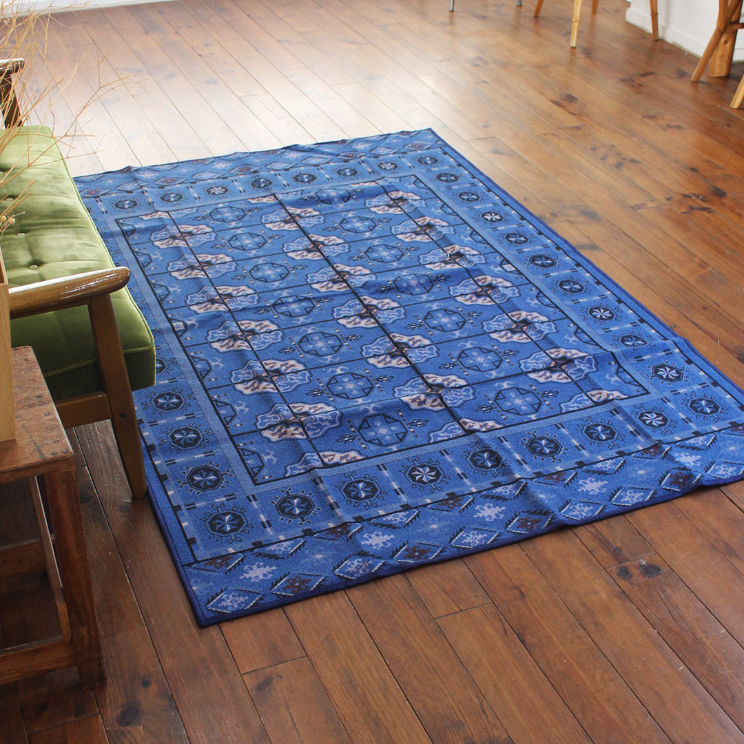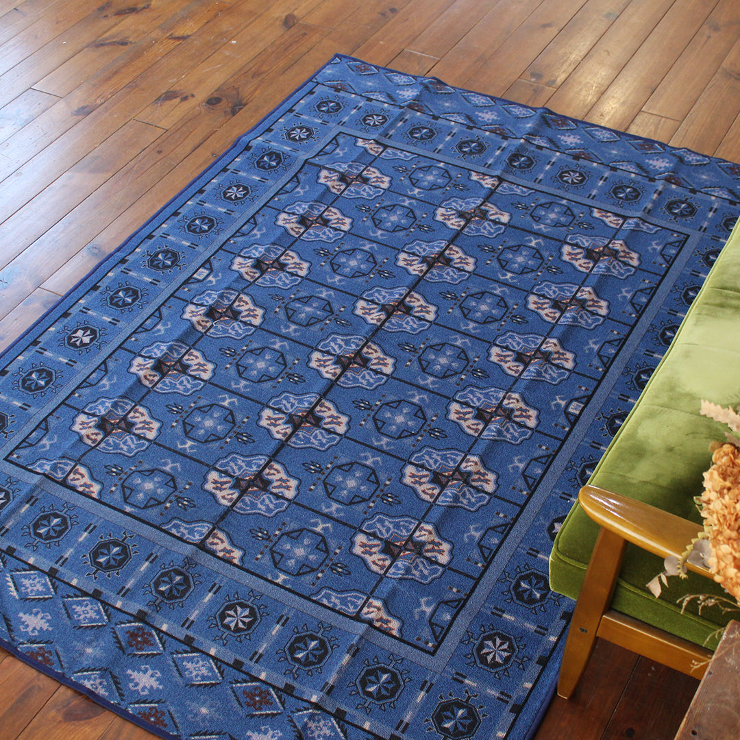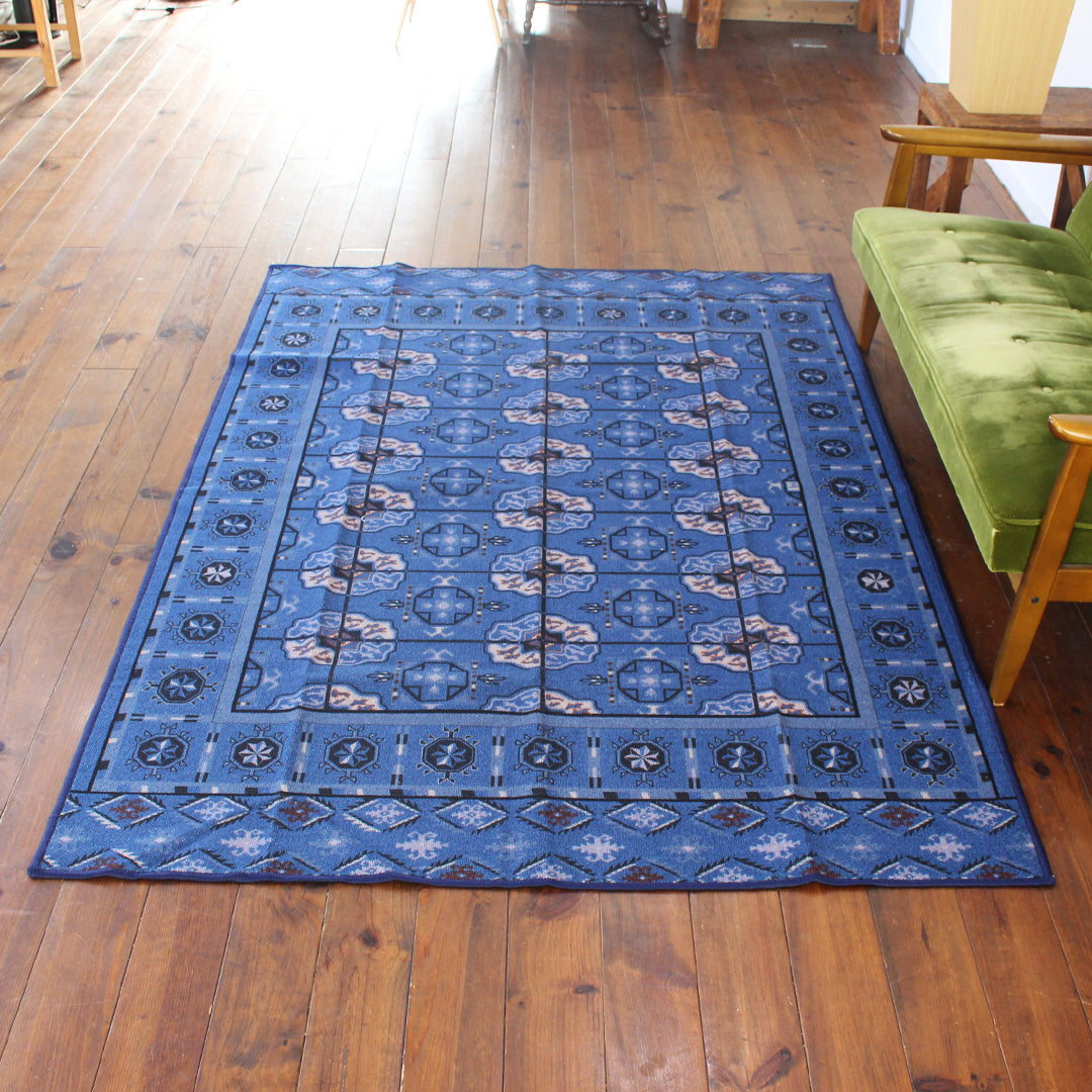 ヴィンテージ風ラグ TOCORU Series アフガンTEKKE ループ ブルー