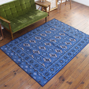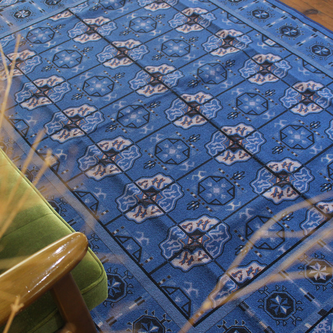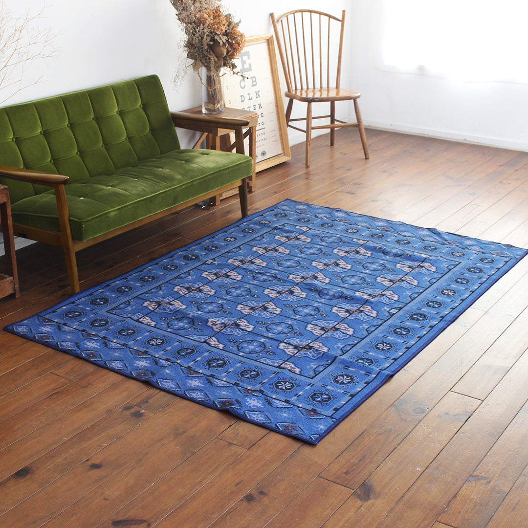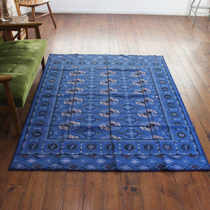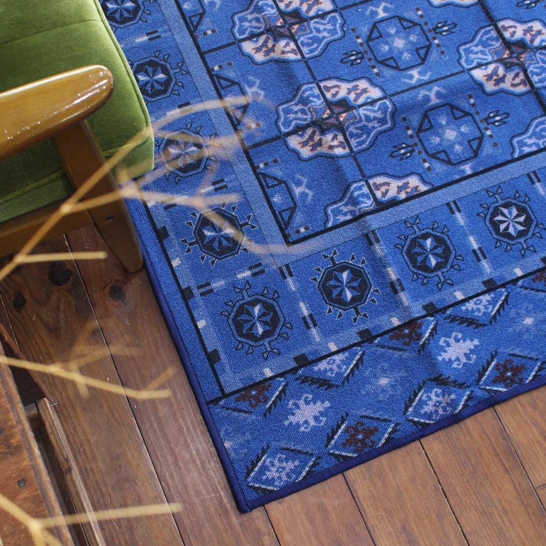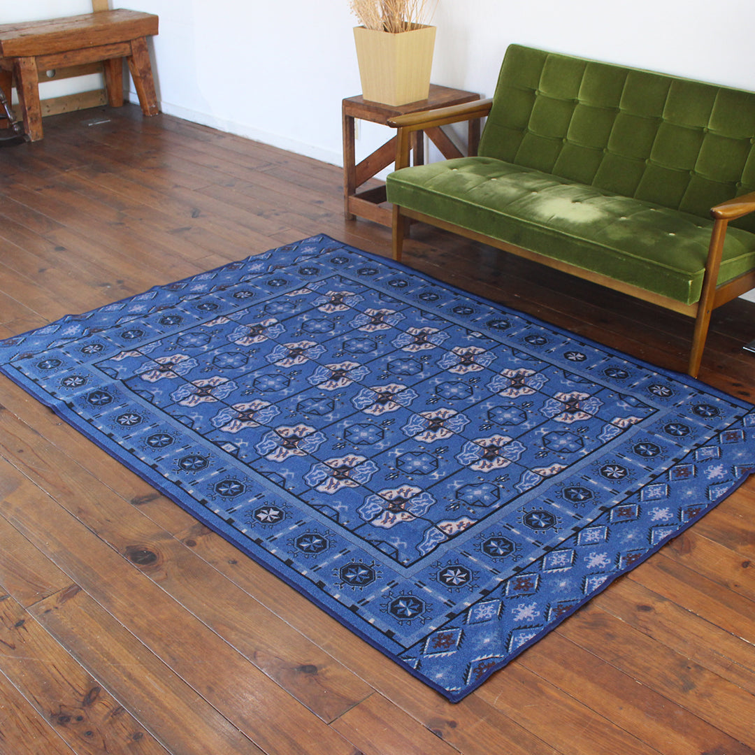 ヴィンテージ風ラグ TOCORU Series アフガンTEKKE ループ ブルー