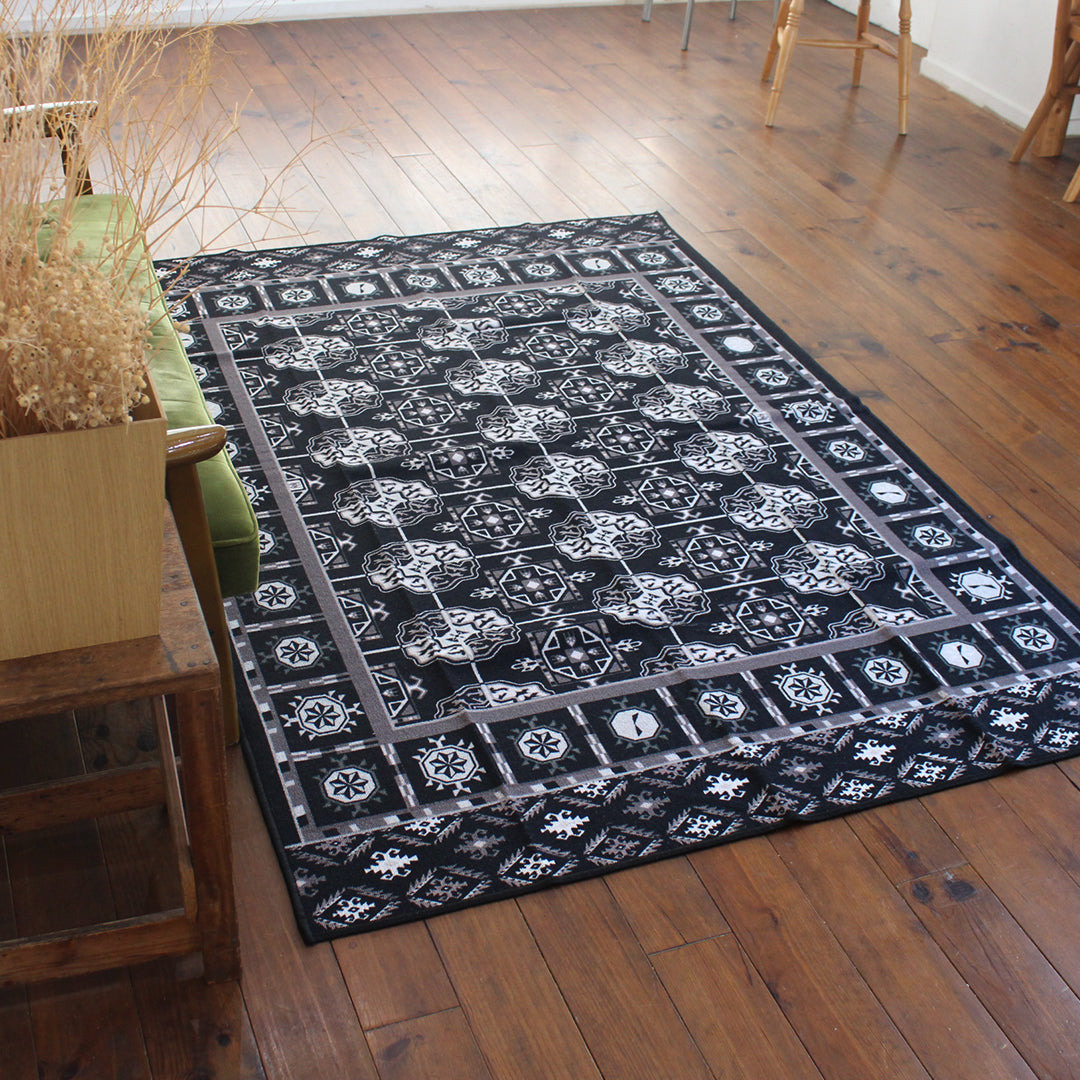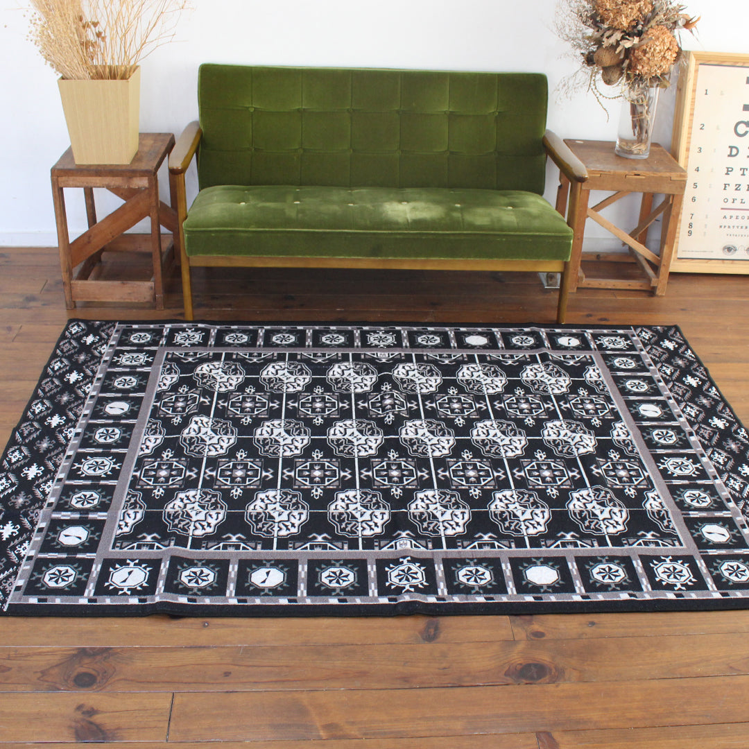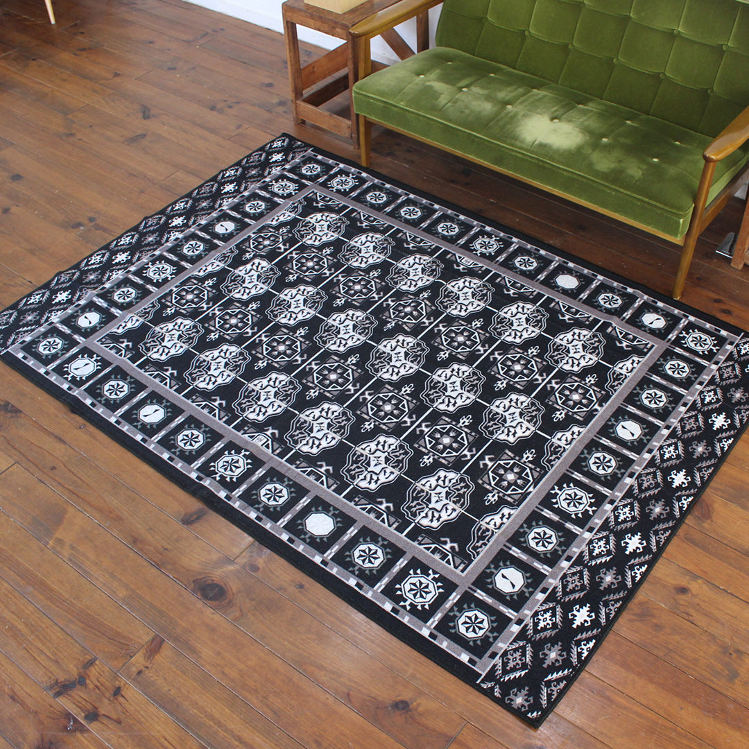 ヴィンテージ風ラグ TOCORU Series ブハラ ループ ブラック