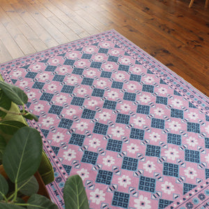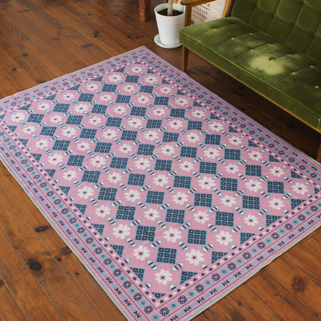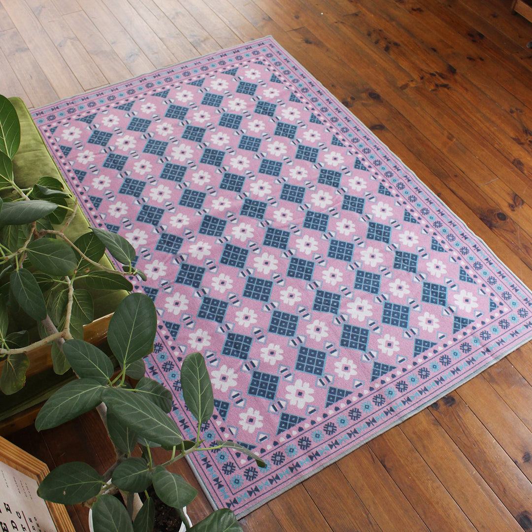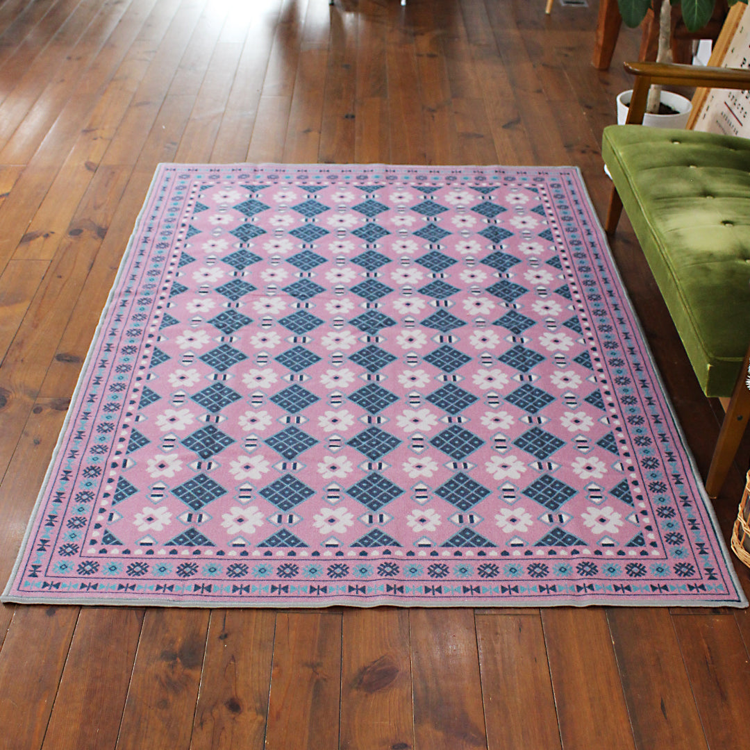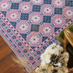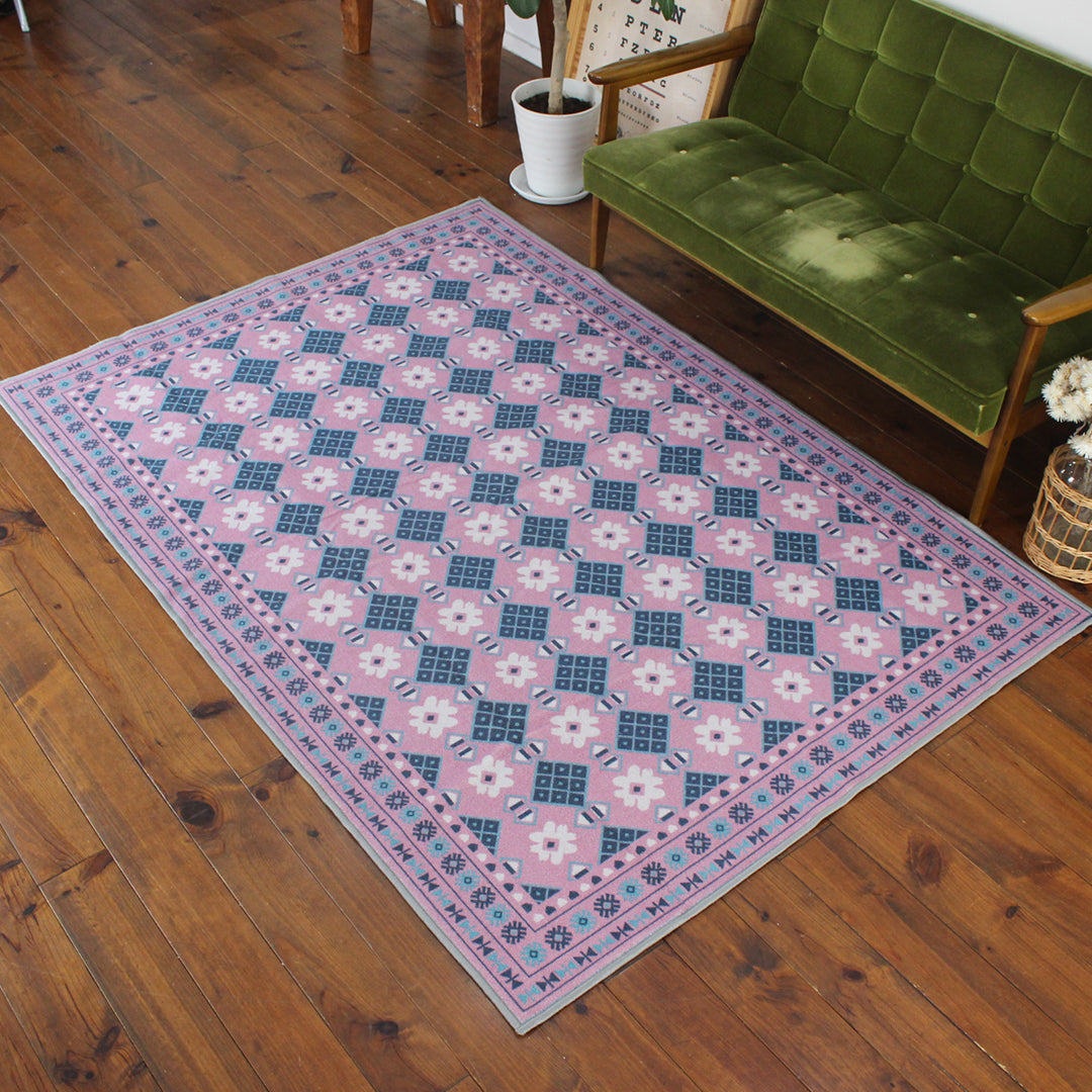 ヴィンテージ風ラグ TOCORU Series バルーチ フラワー ループ パープル