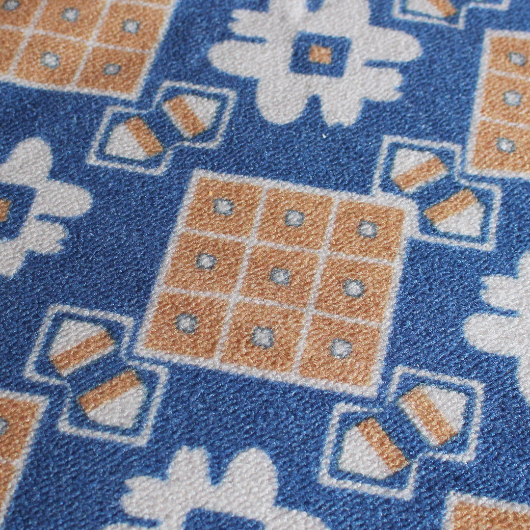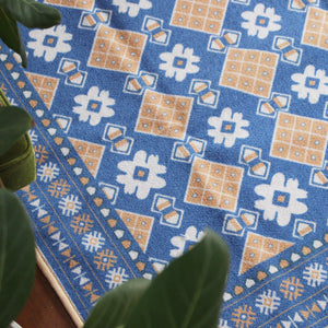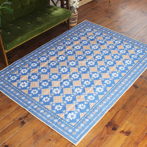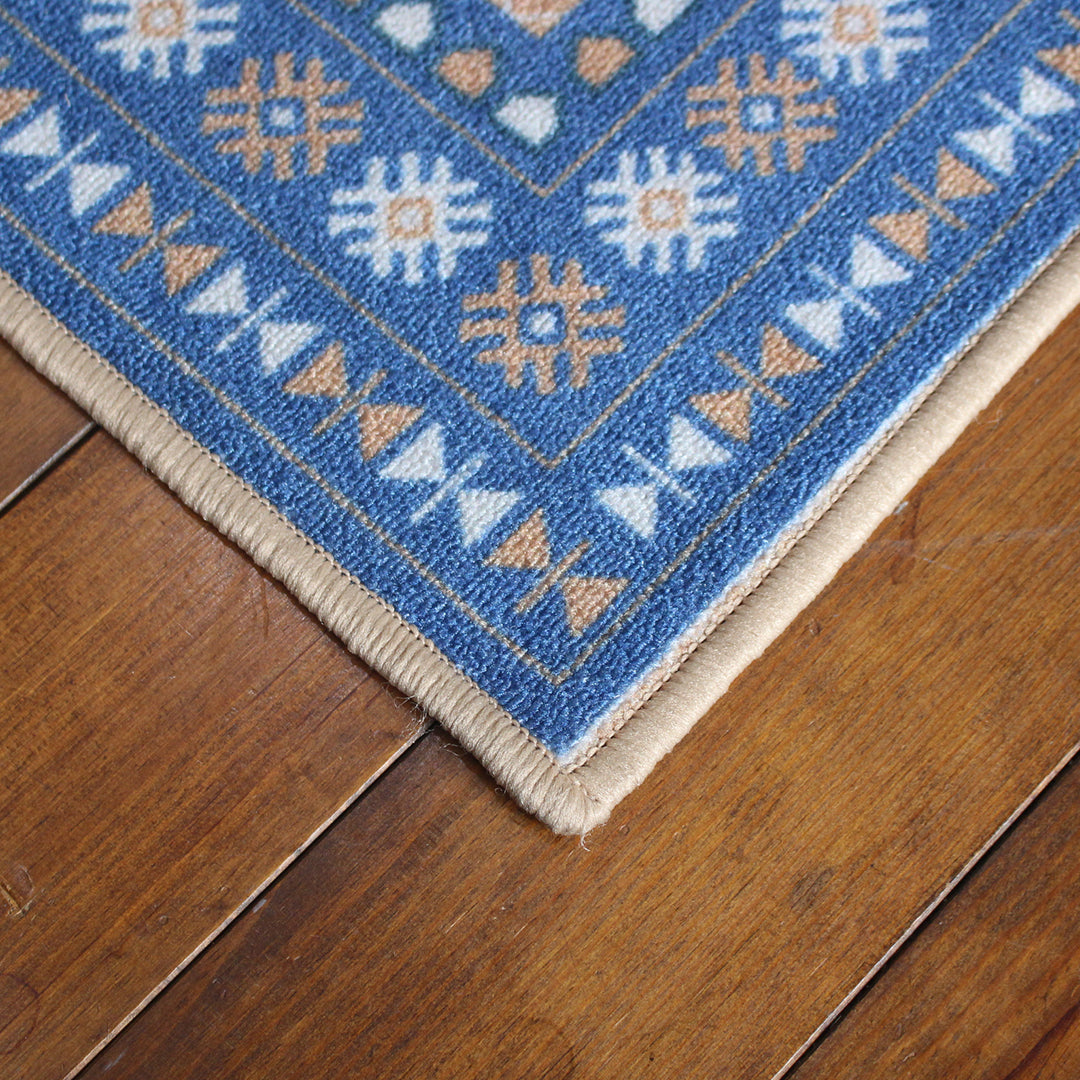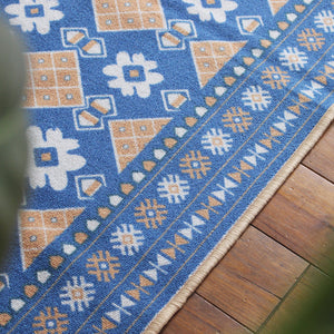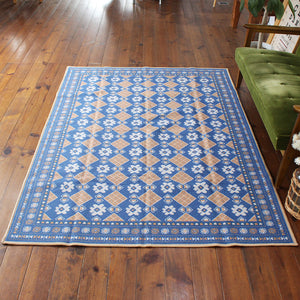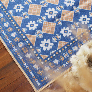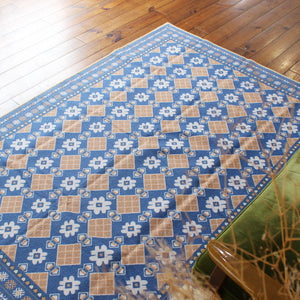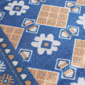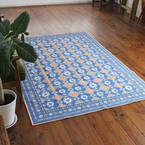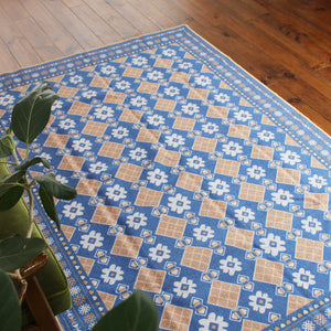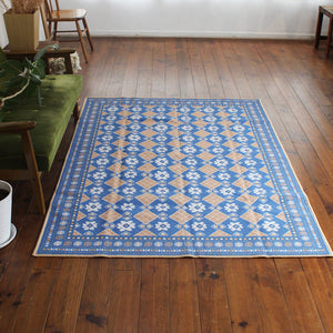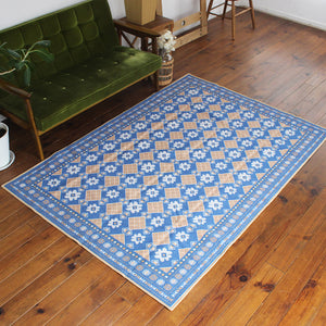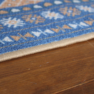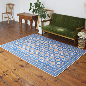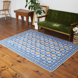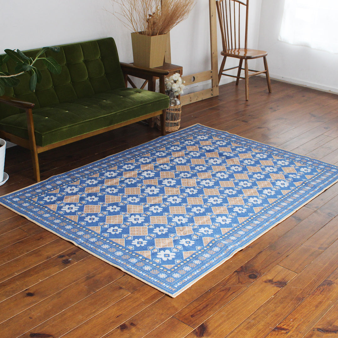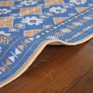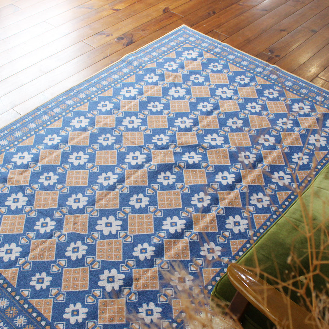 ヴィンテージ風ラグ TOCORU Series バルーチ フラワー ループ ブルー