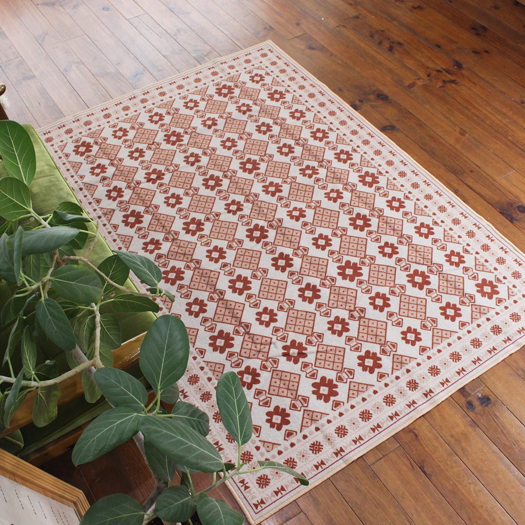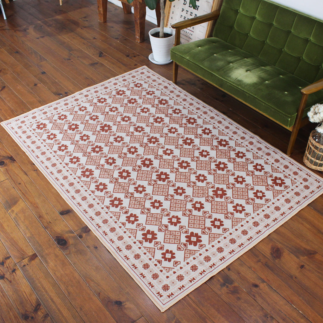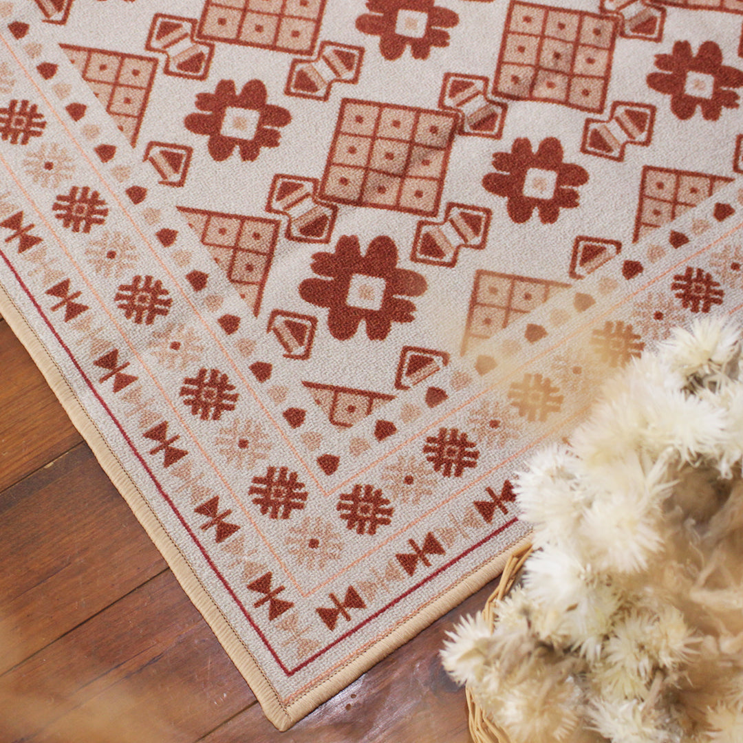 ヴィンテージ風ラグ TOCORU Series バルーチ フラワー ループ ベージュ