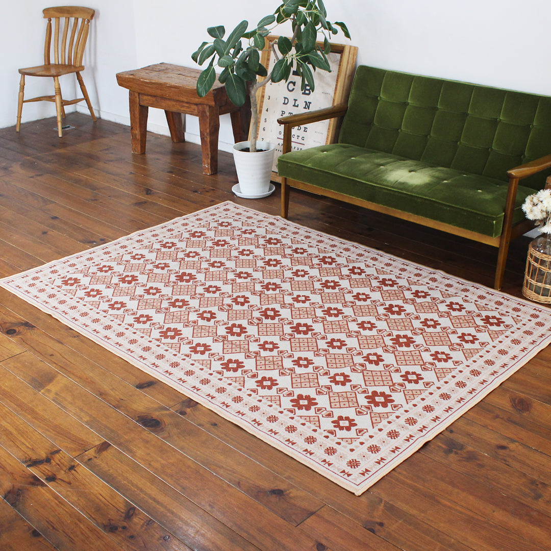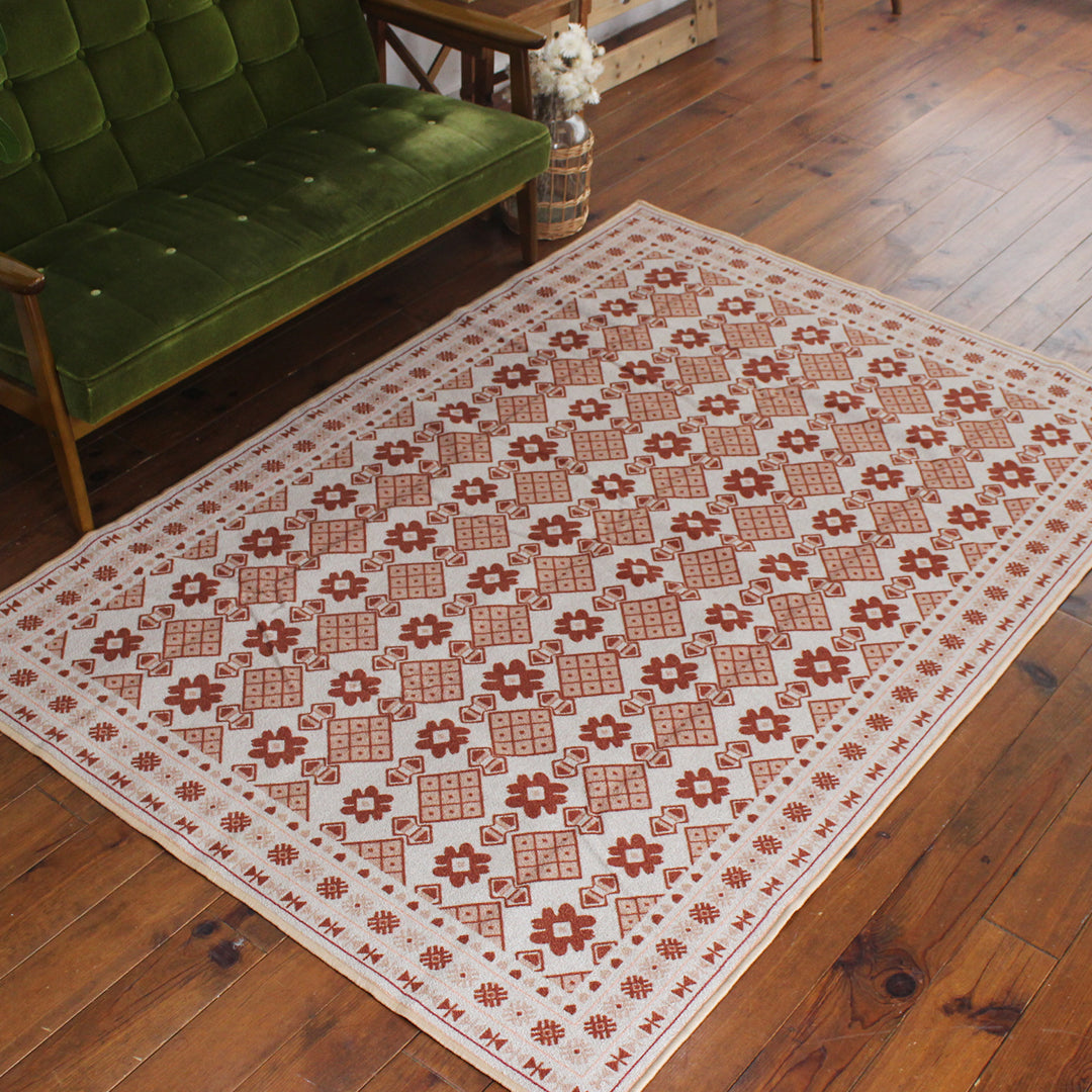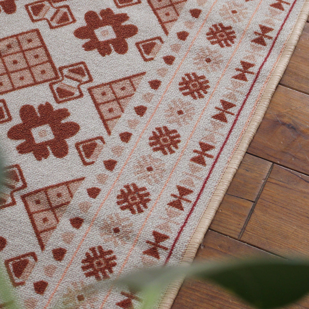 ヴィンテージ風ラグ TOCORU Series バルーチ フラワー ループ ベージュ