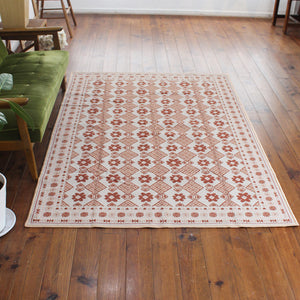 ヴィンテージ風ラグ TOCORU Series AFGHUN ループ レッド×ベージュ