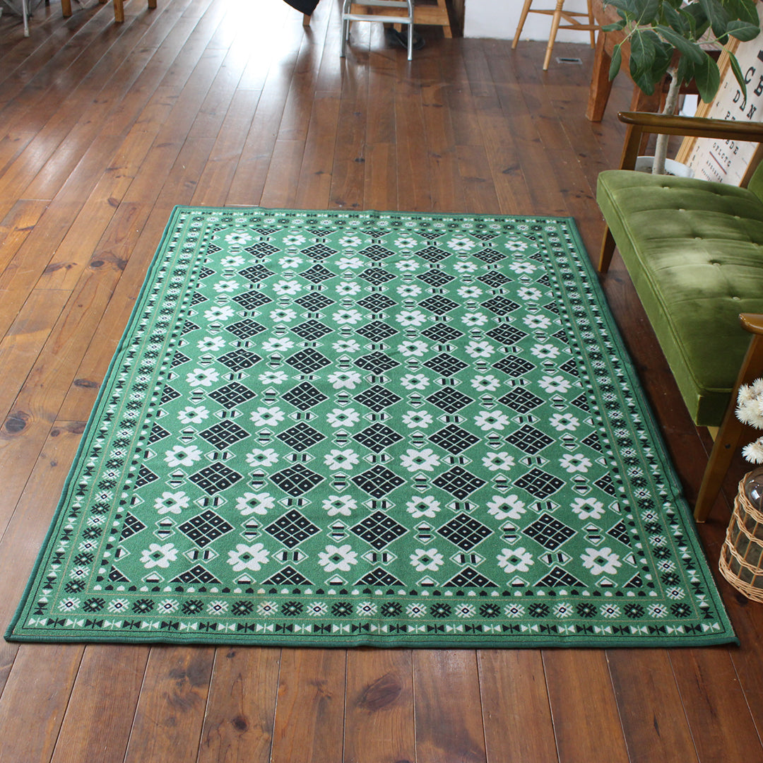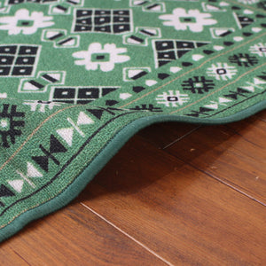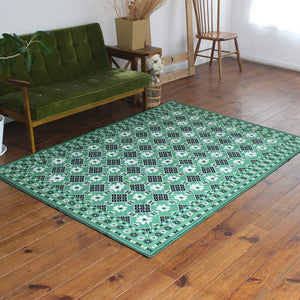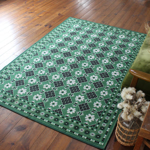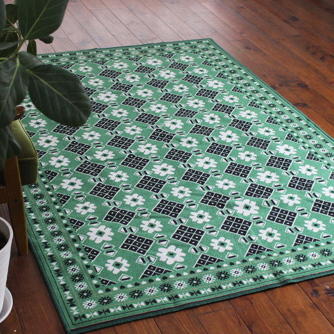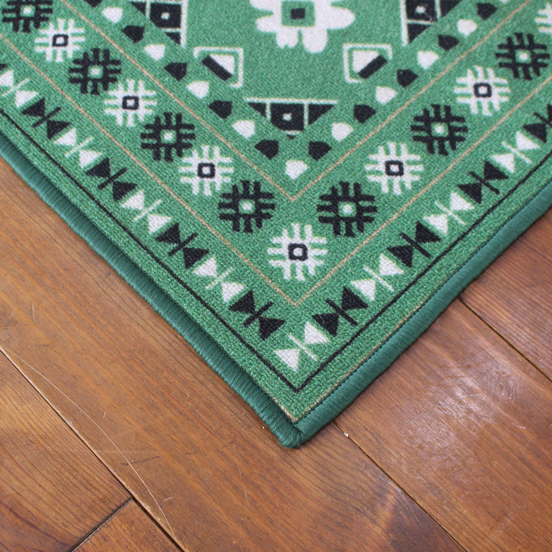 ヴィンテージ風ラグ TOCORU Series バルーチ フラワー ループ グリーン
