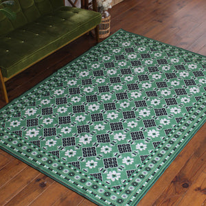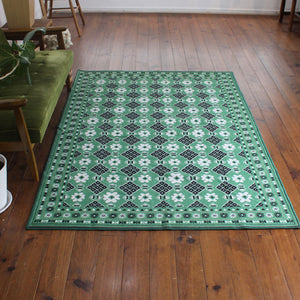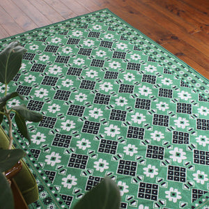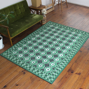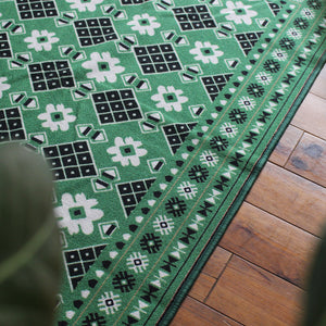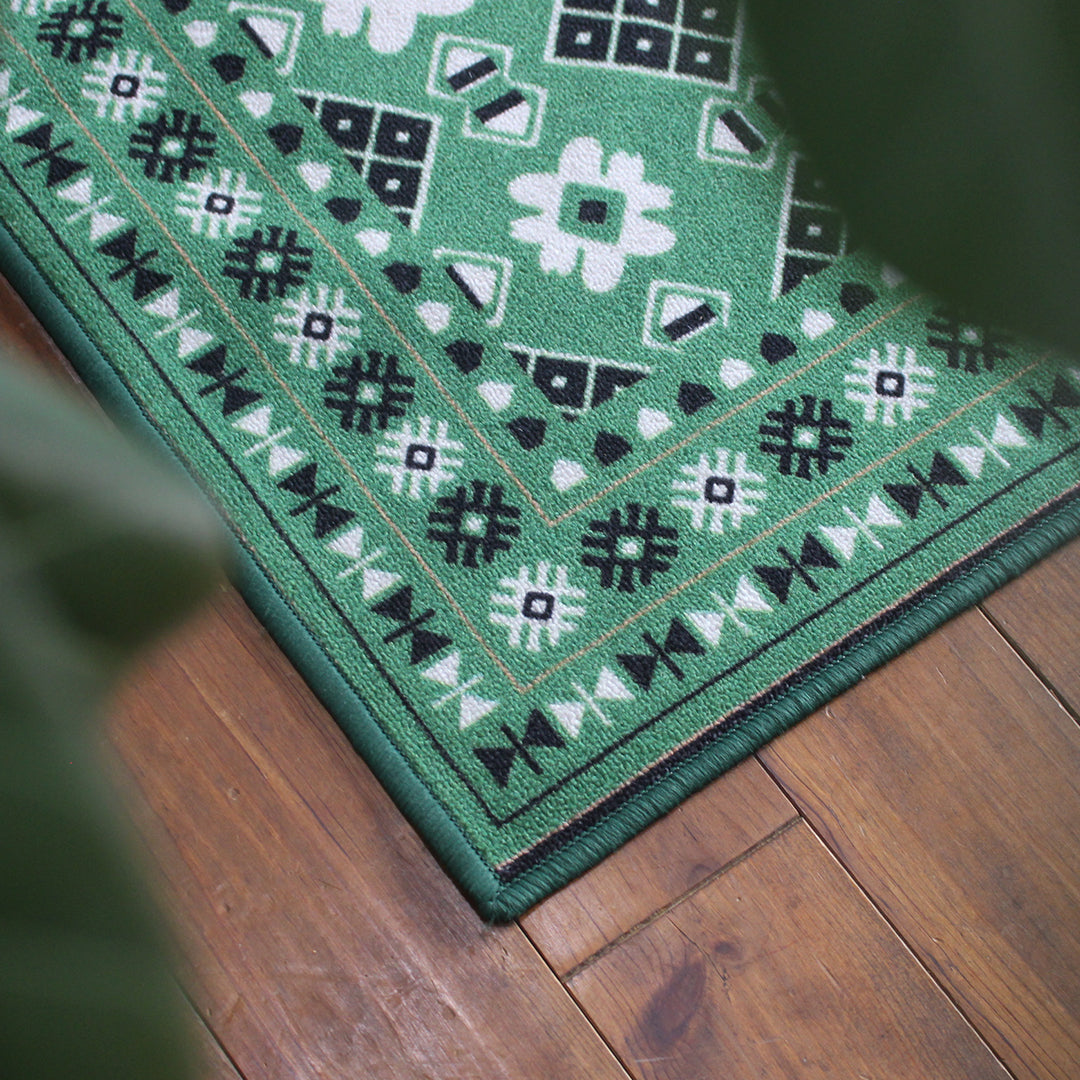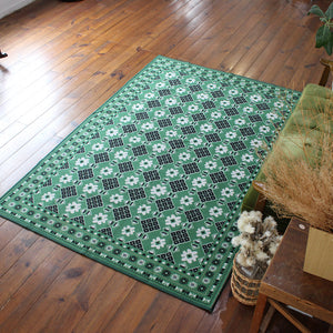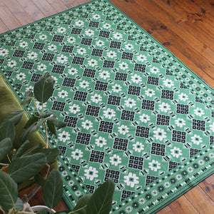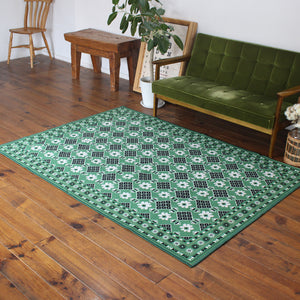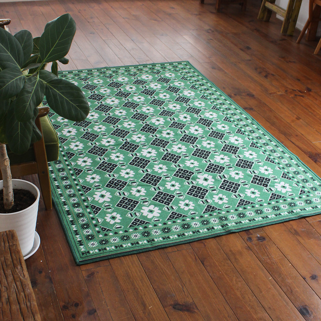 ヴィンテージ風ラグ TOCORU Series バルーチ フラワー ループ グリーン